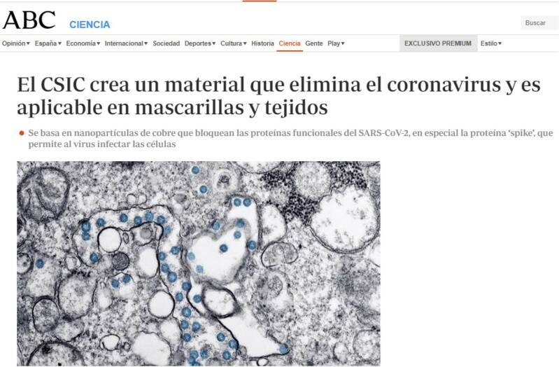El CSIC ha elaborado un nanomaterial para mascarillas que elimina por completo la presencia de COVID-19.